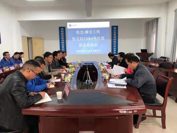 10月16日上午,中國電科院在西安合容電力設備有限公司會議室召開了“張北-雄安特高壓工程張北站110kV干式空心電抗器項目”啟動會,會議由中國電科院高級工程師國江主持。中國電科院侯純泳教授、國網陜西電力公司高級工程師苗竹梅、西安交大汲勝昌教授、合容電氣董事長賈申龍、董事王小平,以及合容電力設備公司部門正職以上領導參加會議。